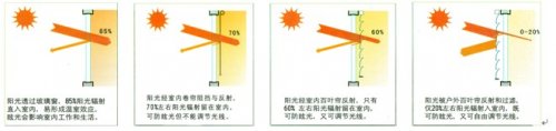 1、外遮陽百葉簾 建筑節(jié)能的高效設(shè)施 活動外遮陽系統(tǒng)在歐美已推廣數(shù)十年歷史,如今已成為行之有效的建筑節(jié)能通用設(shè)備之一。我國南方地區(qū)夏、秋季通過窗戶進入室內(nèi)的太陽輻射熱為空調(diào)的主要負(fù)荷。在各種形式的活動外遮陽產(chǎn)品中,外遮陽百葉簾最為科學(xué),其通過電動或手動控制百葉簾葉片升降與轉(zhuǎn)動,夏季降下百葉簾可阻擋熾烈的陽光及輻射熱進入室內(nèi),轉(zhuǎn)動葉片可保持室內(nèi)通風(fēng)良好,冬季升起百葉簾使陽光透過窗戶進入室內(nèi)采暖、采光,可大大減少空調(diào)負(fù)荷,保持光照均勻,提高建筑居住舒適度。此外,美觀的外遮陽系統(tǒng)還可豐富現(xiàn)代建筑的立面造型。 2、工作原理 遮陽系數(shù)S 外遮陽系統(tǒng)的遮陽效率S值范圍介于0 ~